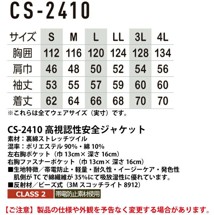 ポイント消化 警備服・防犯商品 秋冬用 コーコス CS-2410 高視認性安全ジャケット S-LL