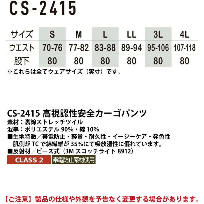 警備服・防犯商品 秋冬用 コーコス CS-2415 高視認性安全カーゴパンツ S-LL