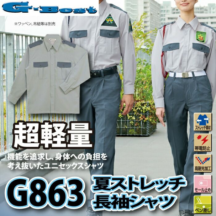 警備服 警備員 警備用 防犯 警備服・防犯商品 春夏用 G-best G863 夏ストレッチ長袖シャツ SS-6L ワッペンや吊紐は付属なし