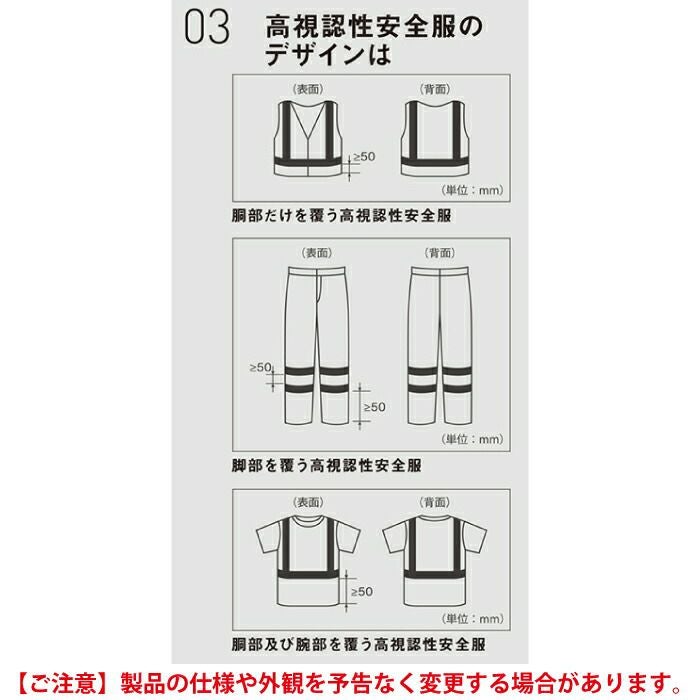 ◇高視認性安全服とは・着用者の存在について視覚的に認知度を高める服であり・未明や早朝・昼間・薄暮時・夜間でも車両や建設機械等の前照灯のもとで・どのような光に対しても運転者や機械作業者にたいし着用者を目立たせることを目的とする視認性の高い蛍光生地と再帰性反射材で構成された衣服です。