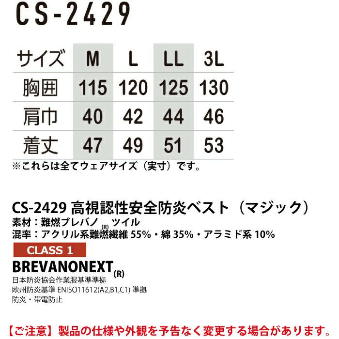ポイント消化 警備服・防犯商品 オールシーズン コーコス CS-2429 高視認性安全防炎ベスト(マジック) M-LL