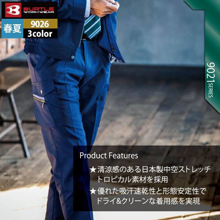 【keyword0323_workclothes】 作業着 作業服 ズボン パンツ カーゴパンツ バートル BURTLE 作業着 作業ズボン 9026 ツータックカーゴパンツ 105-115 ストレッチ 作業服 春夏 ズボン