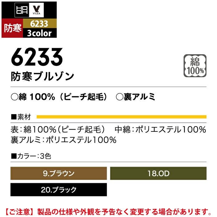 村上被服 HOOH 鳳凰 作業服 作業着 村上被服 HOOH 鳳凰 作業服 防寒着 6233 防寒ブルゾン M-3L