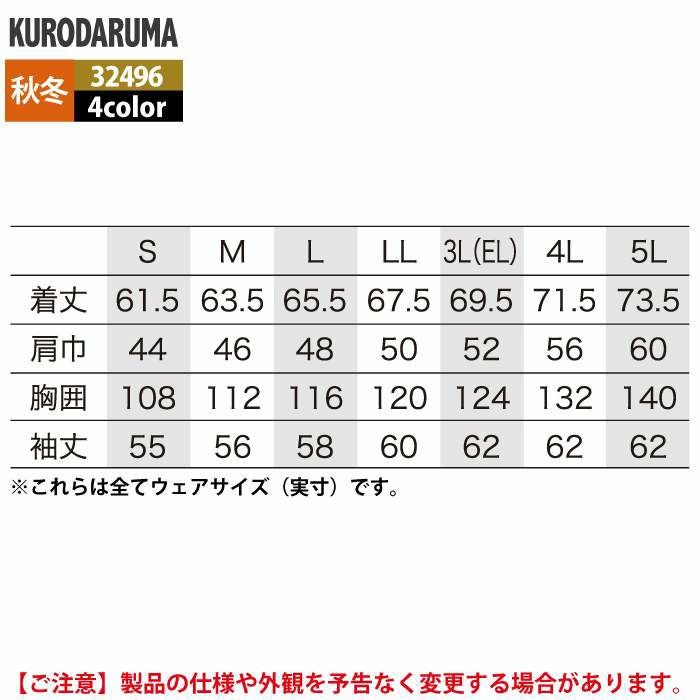 作業服 作業着 クロダルマ 作業服 秋冬用 32496 長袖ジャンパー 3L-5L