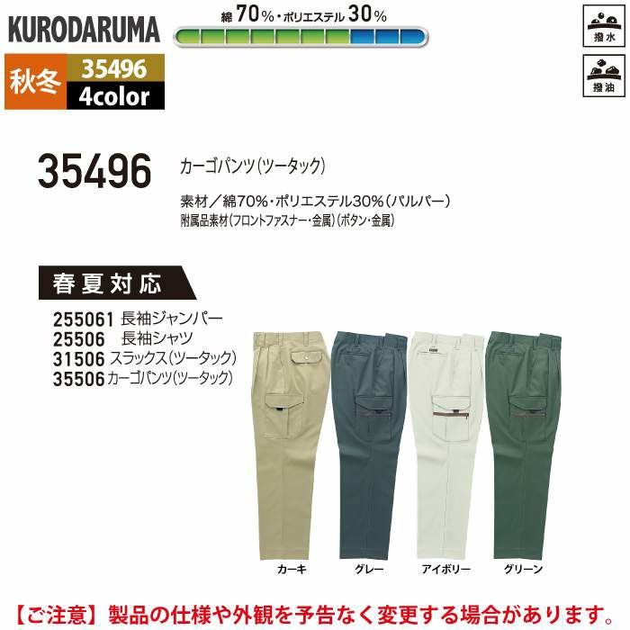 作業服 作業着 クロダルマ 作業服 秋冬用 35496 カーゴパンツ(ツータック) 91-120