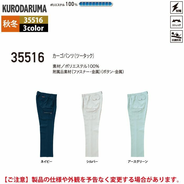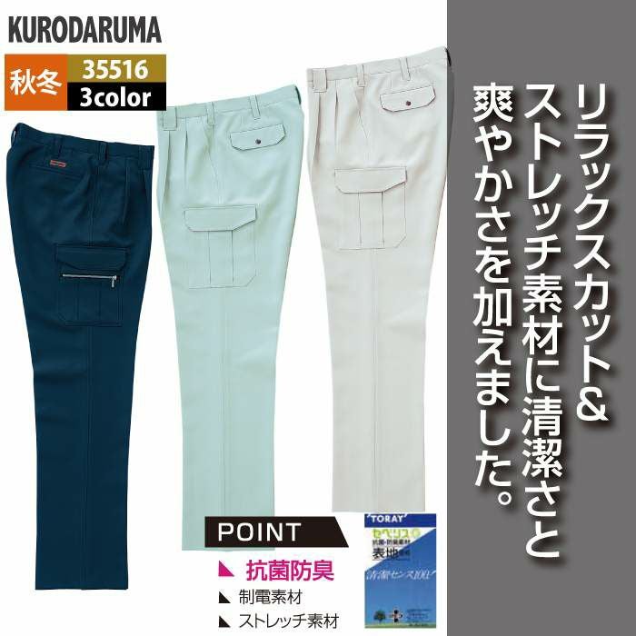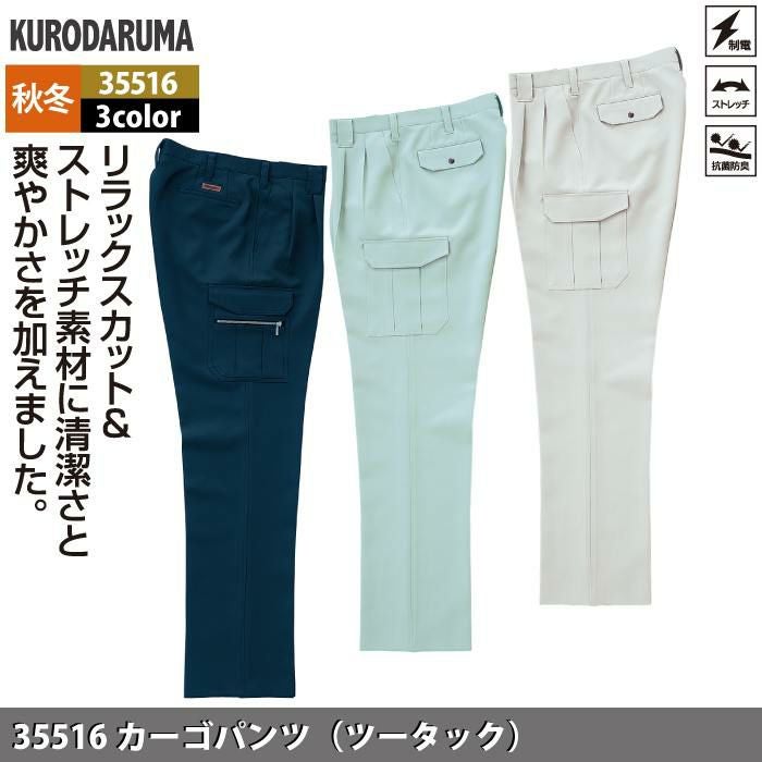 作業服 作業着 クロダルマ 作業服 秋冬用 35516 カーゴパンツ(ツータック) 70-88