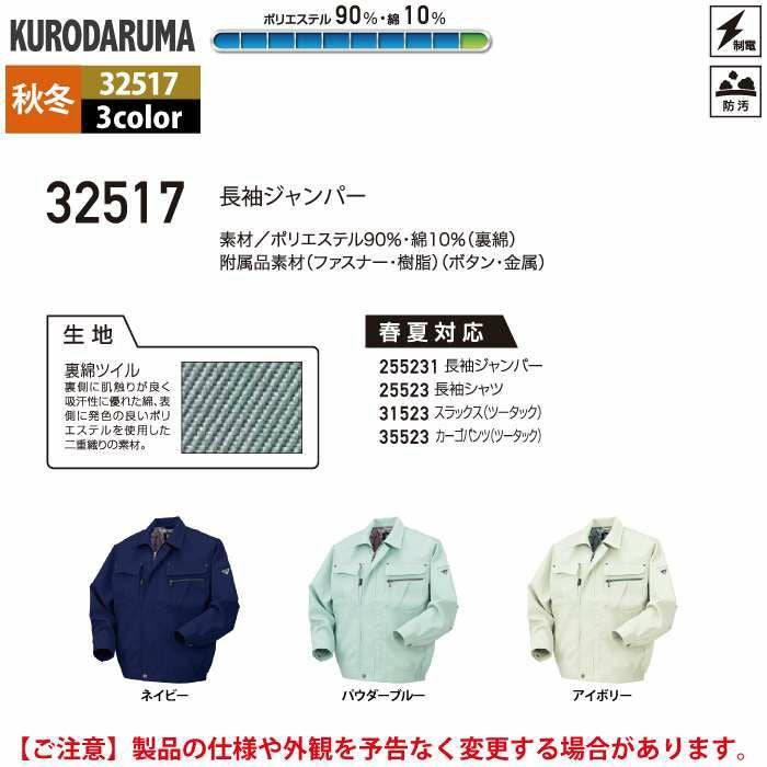 作業服 作業着 クロダルマ 作業服 秋冬用 32517 長袖ジャンパー S-LL