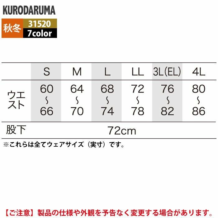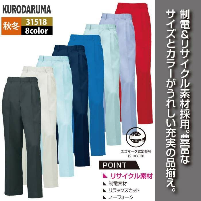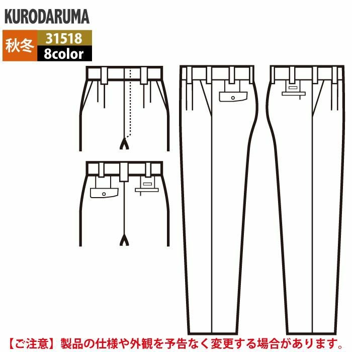 作業服 作業着 クロダルマ 作業服 秋冬用 31518 スラックス(ツータック) 70-88