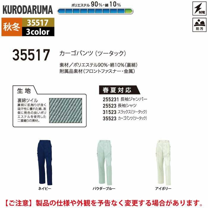 作業服 作業着 クロダルマ 作業服 秋冬用 35517 カーゴパンツ(ツータック) 70-88