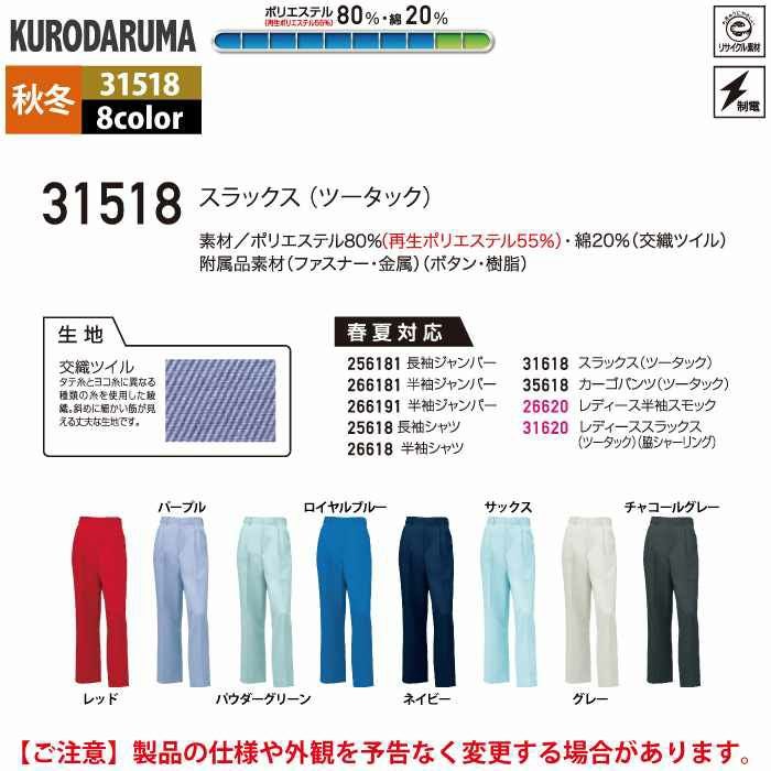 作業服 作業着 クロダルマ 作業服 秋冬用 31518 スラックス(ツータック) 91-120