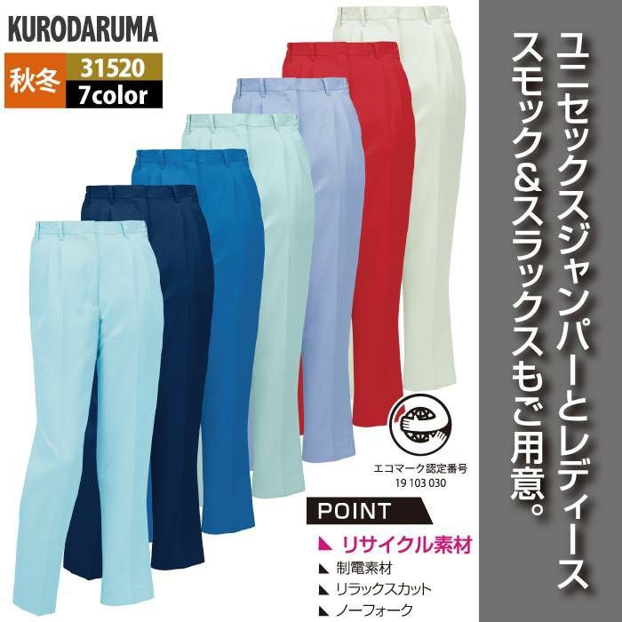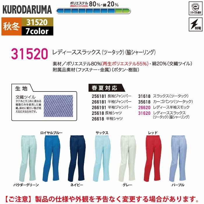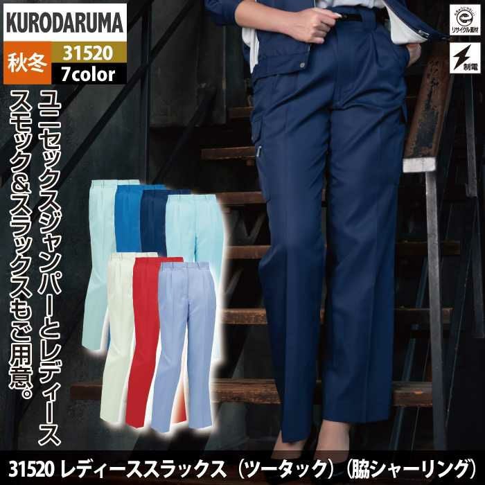 作業服 作業着 クロダルマ 作業服 秋冬用 31520 レディーススラックス(ツータック) S-LL