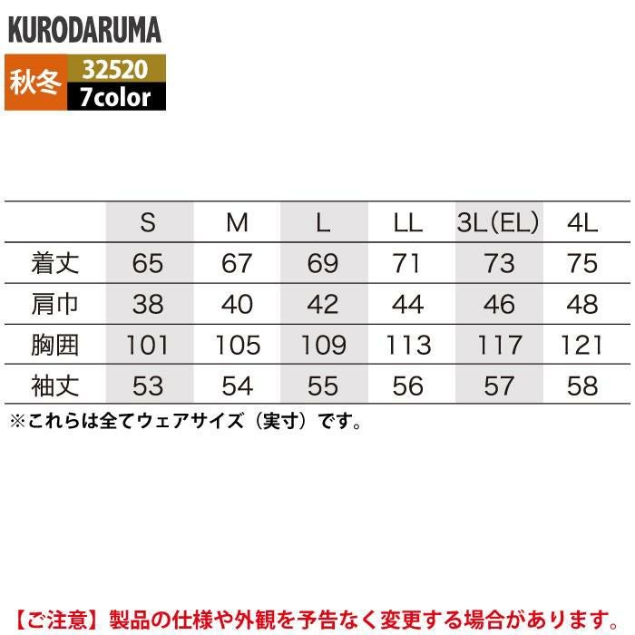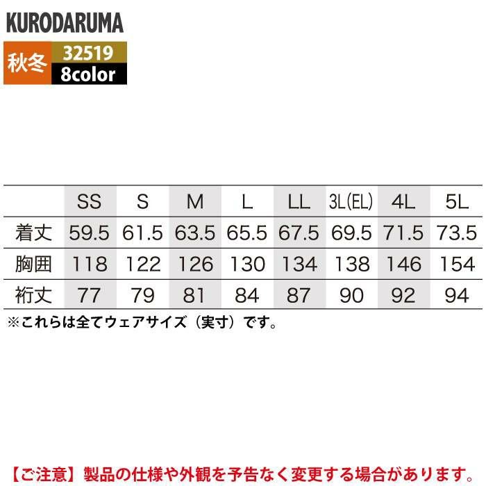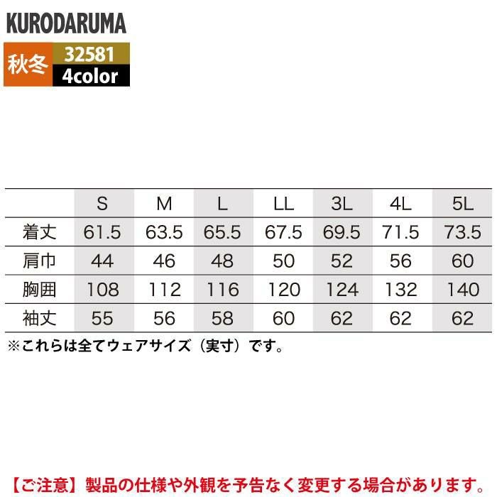 作業服 作業着 クロダルマ 作業服 秋冬用 32581 長袖ジャンパー 3L-5L