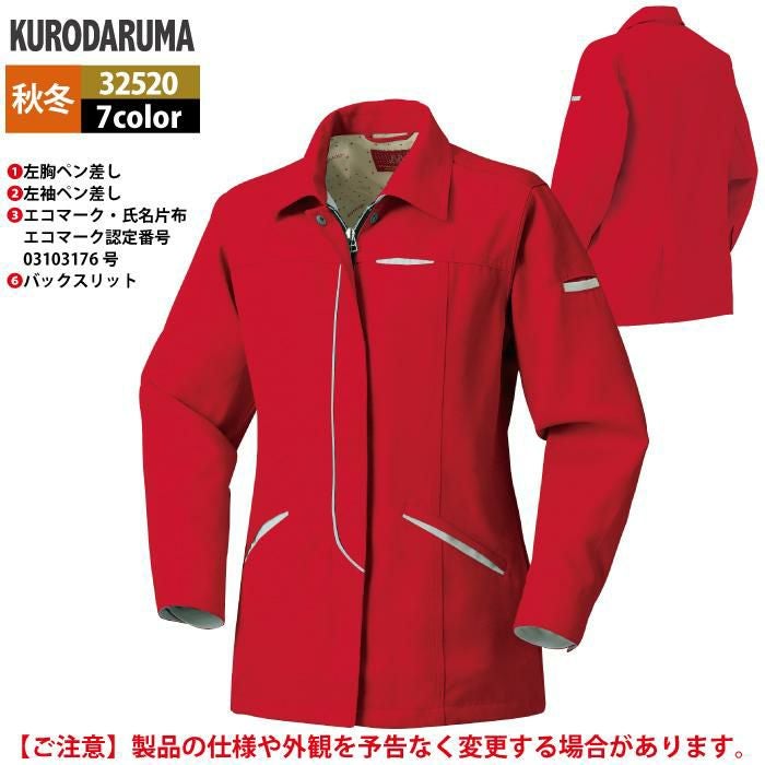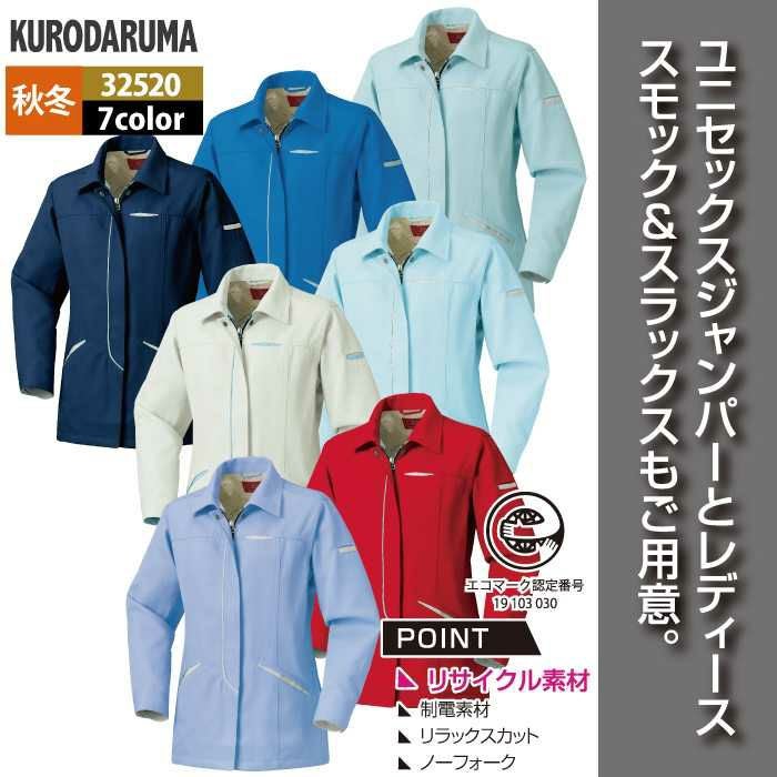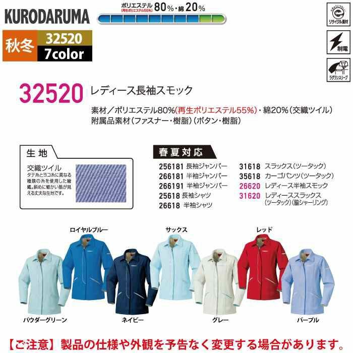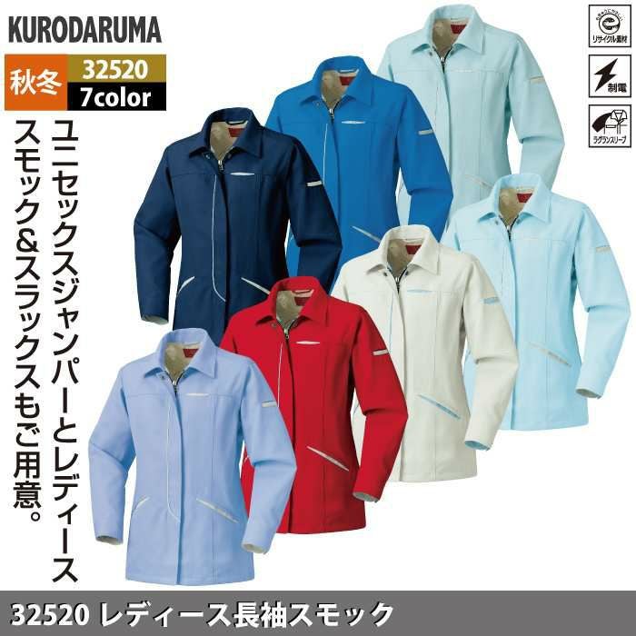 作業服 作業着 クロダルマ 作業服 秋冬用 32520 レディース長袖スモック S-LL