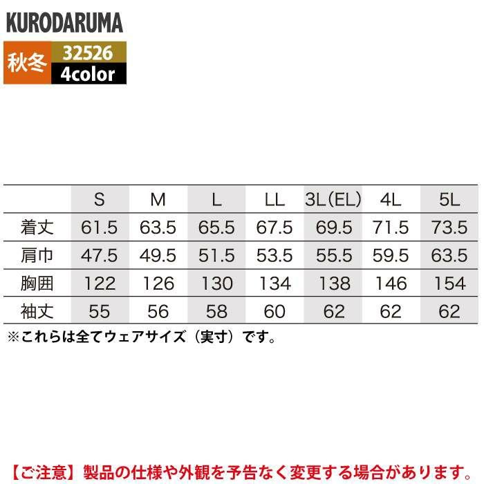作業服 作業着 クロダルマ 作業服 秋冬用 32526 長袖ジャンパー 3L-5L
