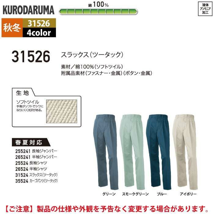 作業服 作業着 クロダルマ 作業服 秋冬用 31526 スラックス(ツータック) 70-88