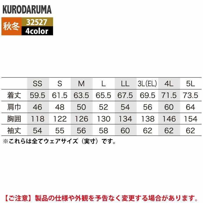 作業服 作業着 クロダルマ 作業服 秋冬用 32527 長袖ジャンパー 3L-5L