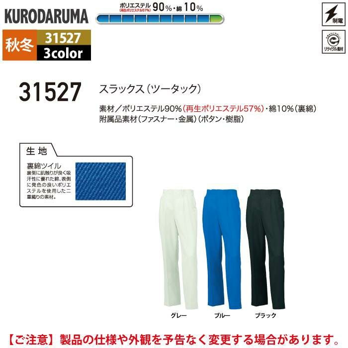 作業服 作業着 クロダルマ 作業服 秋冬用 31527 スラックス(ツータック) 91-120
