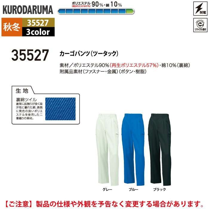 作業服 作業着 クロダルマ 作業服 秋冬用 35527 カーゴパンツ(ツータック) 70-88