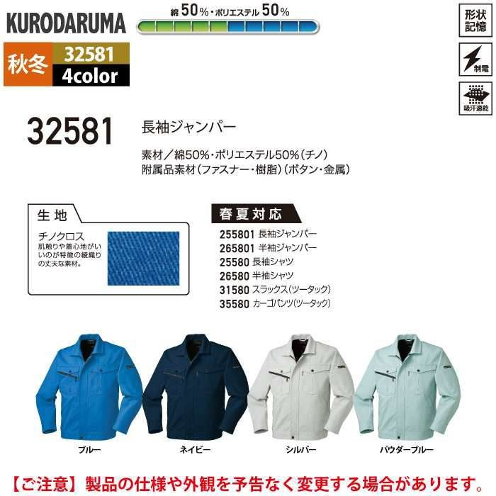 作業服 作業着 クロダルマ 作業服 秋冬用 32581 長袖ジャンパー S-LL