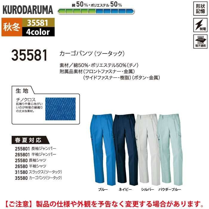 作業服 作業着 クロダルマ 作業服 秋冬用 35581 カーゴパンツ(ツータック) 91-120