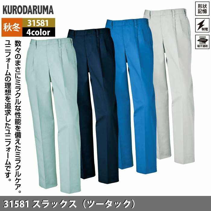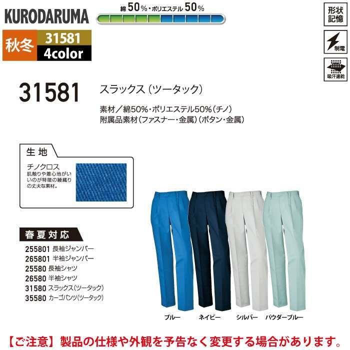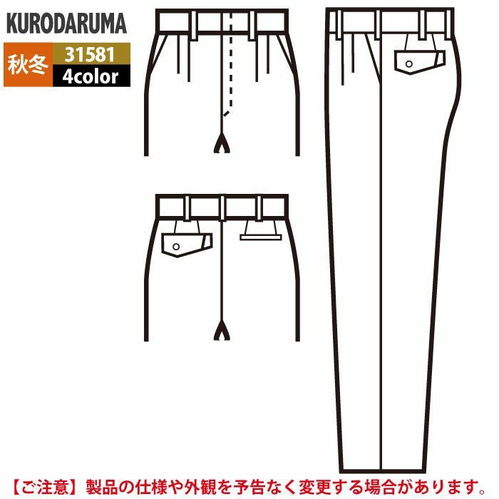 作業服 作業着 クロダルマ 作業服 秋冬用 31581 スラックス(ツータック) 70-88