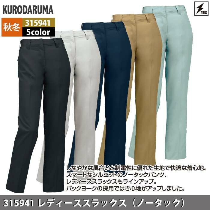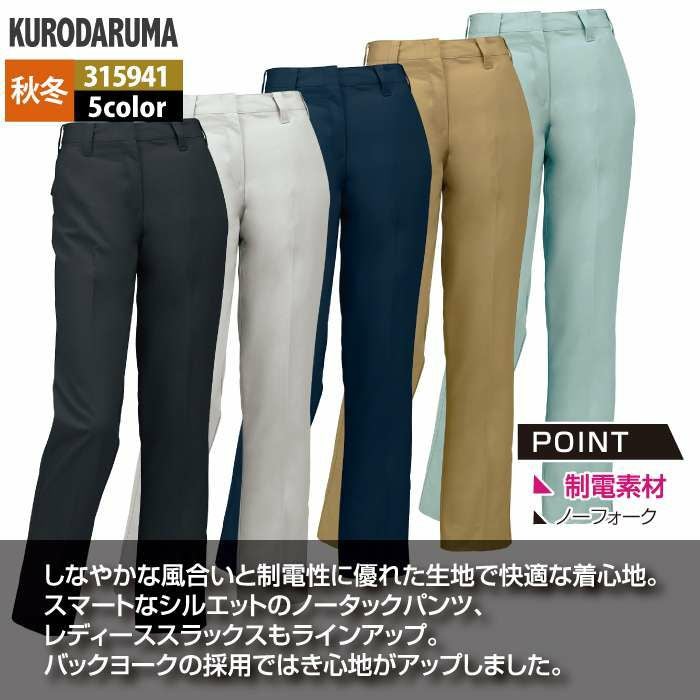 作業服 作業着 クロダルマ 作業服 秋冬用 315941 レディーススラックス(ノータック) 61-80