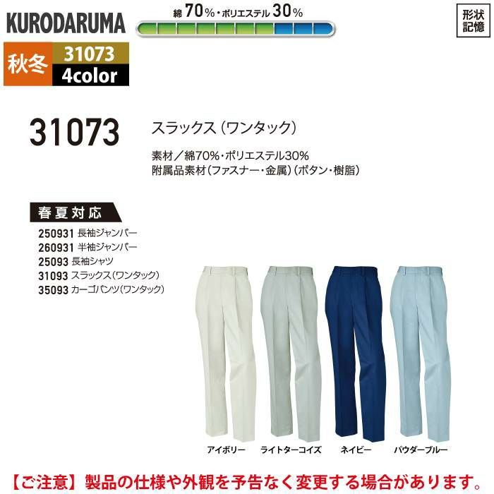 作業服 作業着 クロダルマ 作業服 秋冬用 31073 スラックス(ワンタック) 91-120