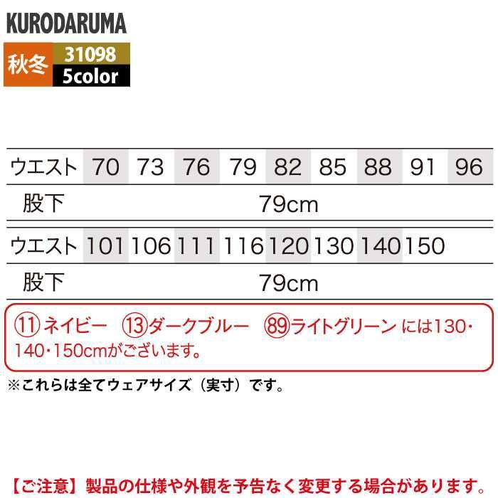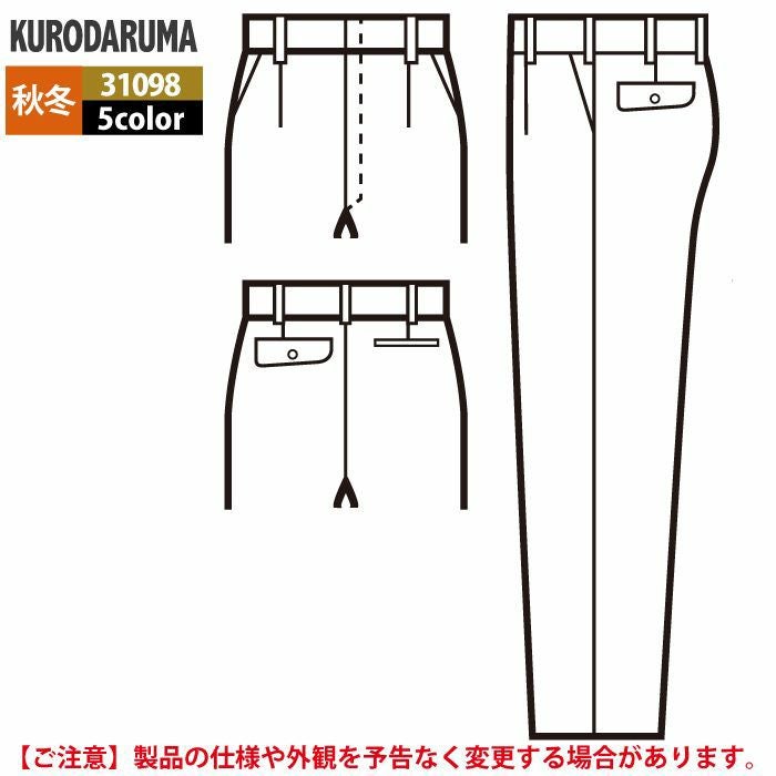 作業服 作業着 クロダルマ 作業服 秋冬用 31098 スラックス(ワンタック) 91-120