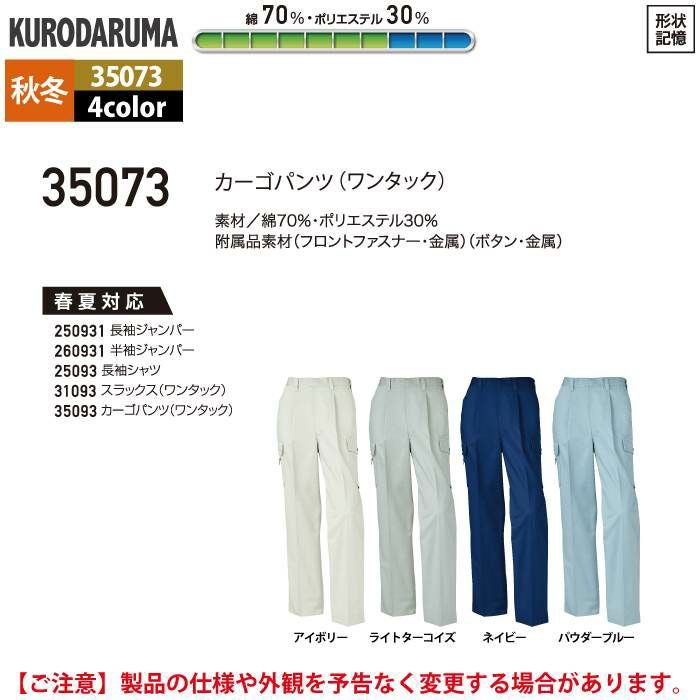 作業服 作業着 クロダルマ 作業服 秋冬用 35073 カーゴパンツ(ワンタック) 70-88