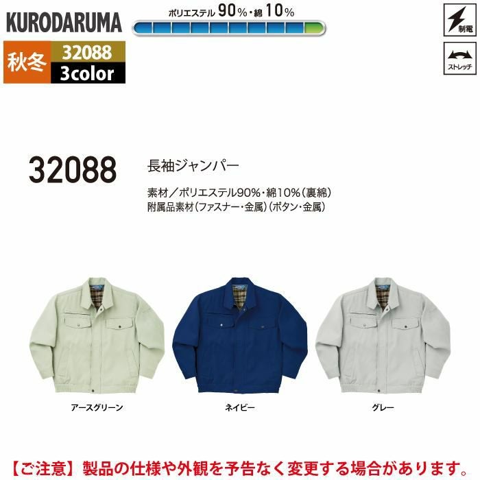 作業服 作業着 クロダルマ 作業服 秋冬用 32088 長袖ジャンパー S-LL