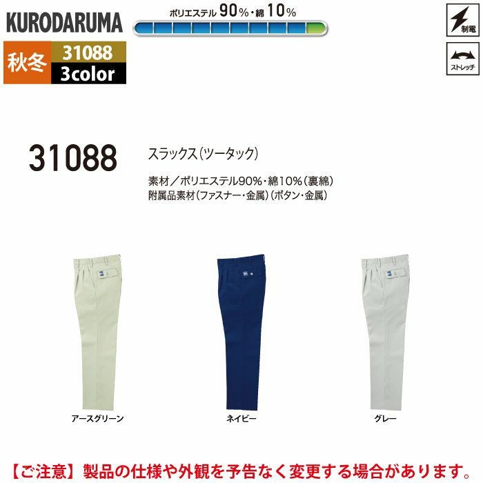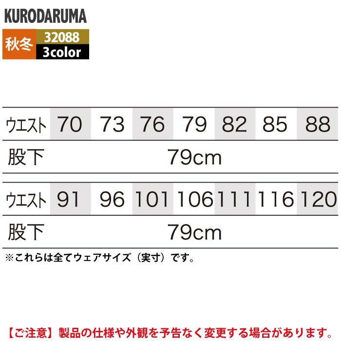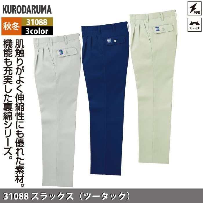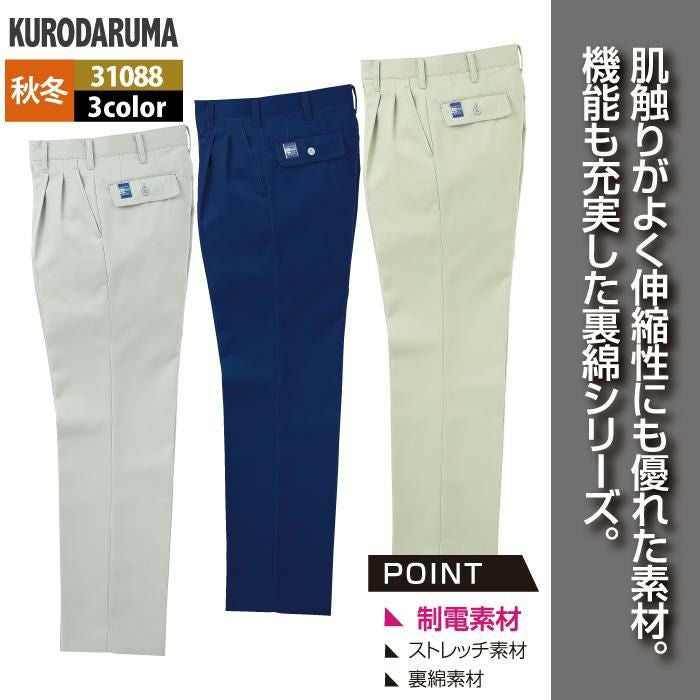 作業服 作業着 クロダルマ 作業服 秋冬用 31088 スラックス(ツータック) 70-88