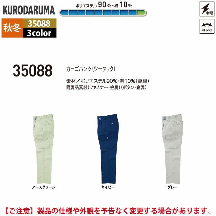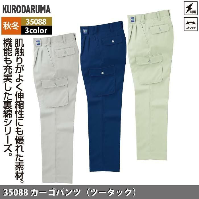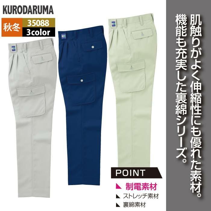 作業服 作業着 クロダルマ 作業服 秋冬用 35088 カーゴパンツ(ツータック) 70-88