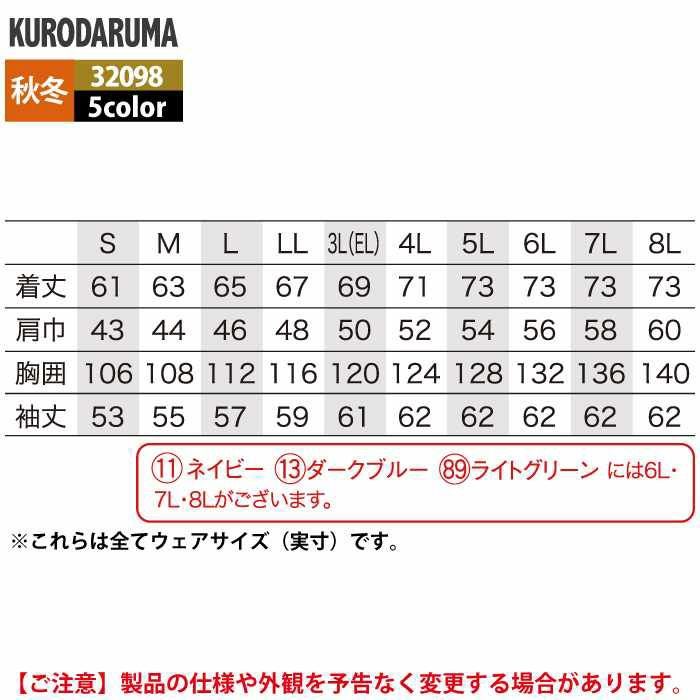 作業服 作業着 クロダルマ 作業服 秋冬用 32098 長袖ジャンパー 3L-5L