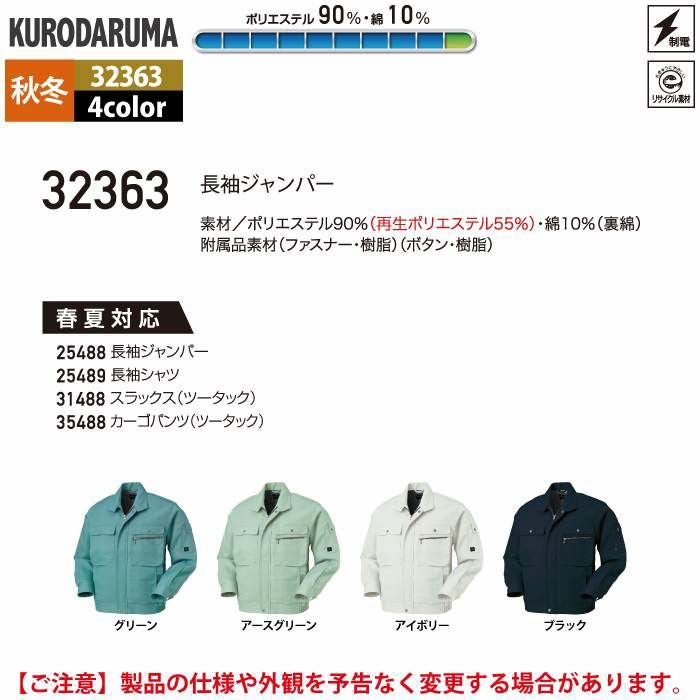 作業服 作業着 クロダルマ 作業服 秋冬用 32363 長袖ジャンパー 3L-5L