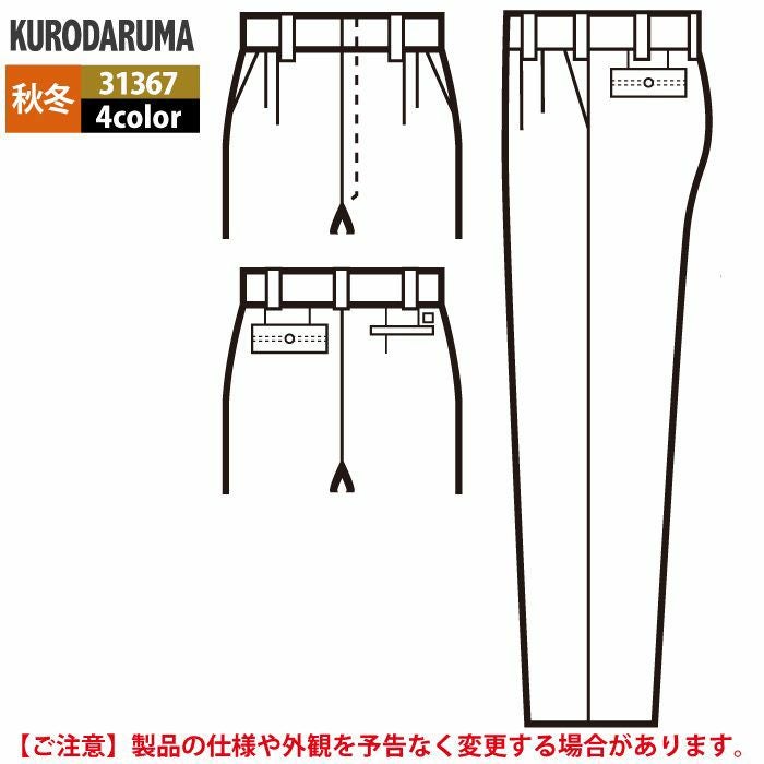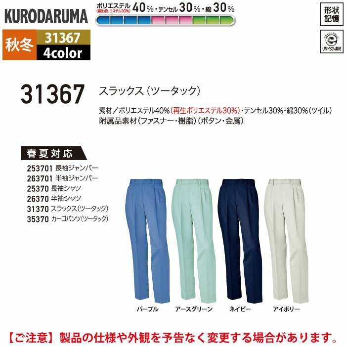 作業服 作業着 クロダルマ 作業服 秋冬用 31367 スラックス(ツータック) 70-88