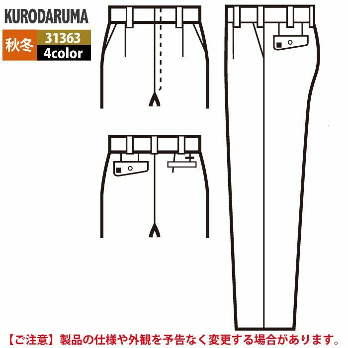 作業服 作業着 クロダルマ 作業服 秋冬用 31363 スラックス(ワンタック) 70-88