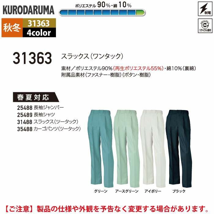 作業服 作業着 クロダルマ 作業服 秋冬用 31363 スラックス(ワンタック) 91-120