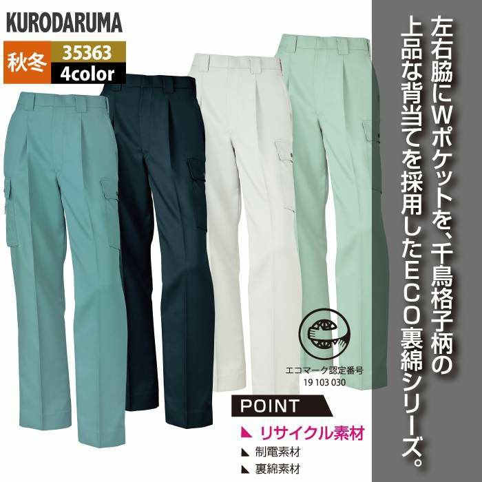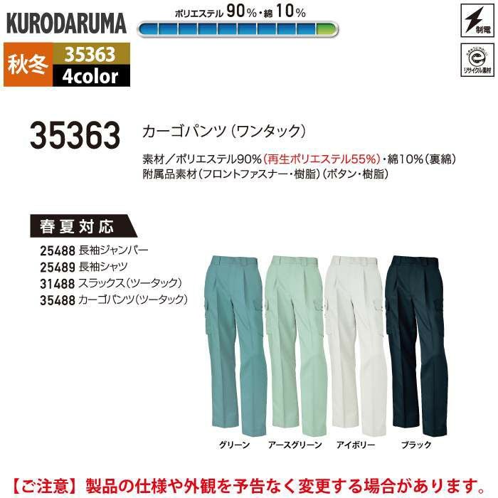 作業服 作業着 クロダルマ 作業服 秋冬用 35363 カーゴパンツ(ワンタック) 70-88