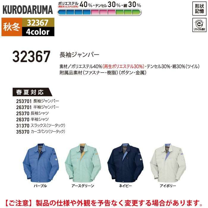 作業服 作業着 クロダルマ 作業服 秋冬用 32367 長袖ジャンパー S-LL