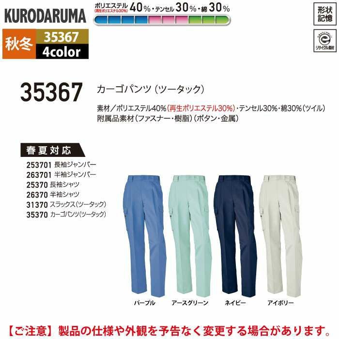 作業服 作業着 クロダルマ 作業服 秋冬用 35367 カーゴパンツ(ツータック) 70-88