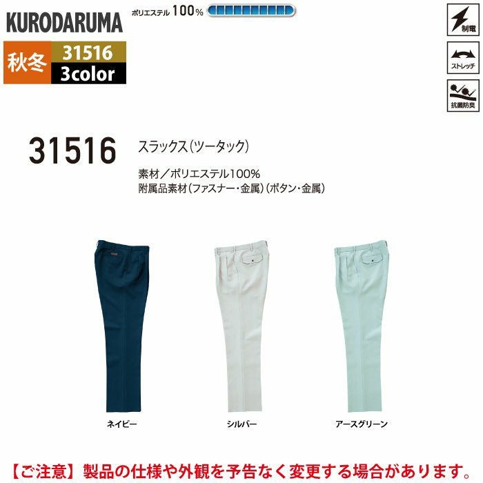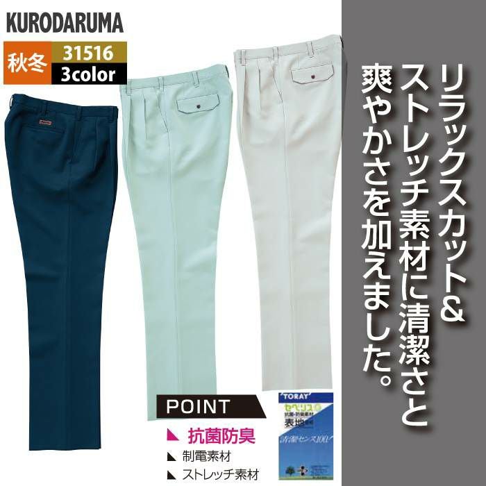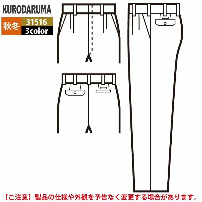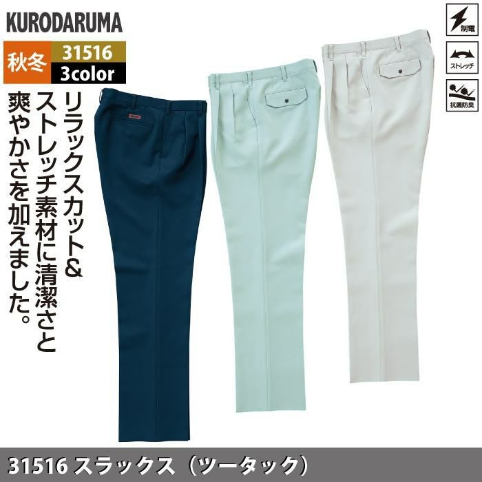 作業服 作業着 クロダルマ 作業服 秋冬用 31516 スラックス(ツータック) 70-88