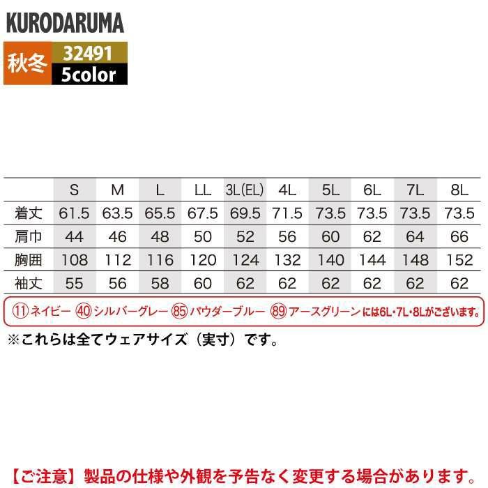 作業服 作業着 クロダルマ 作業服 秋冬用 32491 長袖ジャンパー 3L-5L