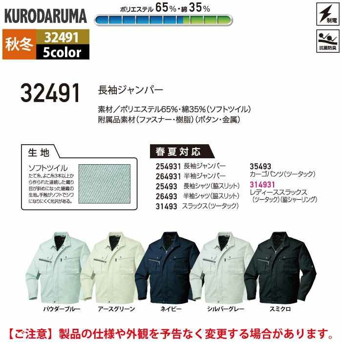 作業服 作業着 クロダルマ 作業服 秋冬用 32491 長袖ジャンパー S-LL