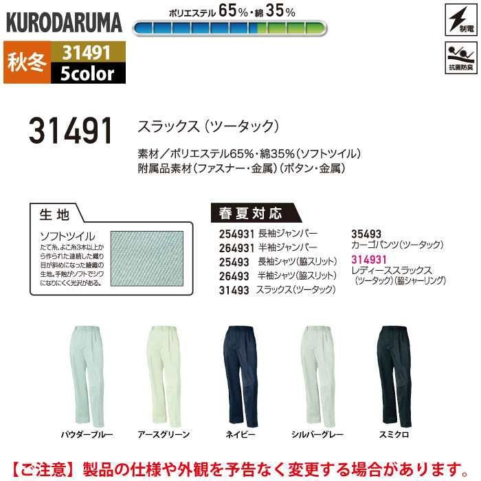 作業服 作業着 クロダルマ 作業服 秋冬用 31491 スラックス(ツータック) 91-120