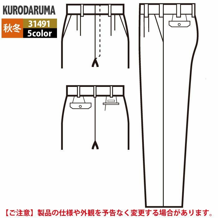 作業服 作業着 クロダルマ 作業服 秋冬用 31491 スラックス(ツータック) 70-88