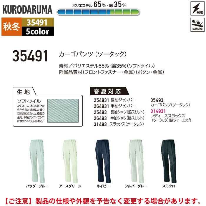 作業服 作業着 クロダルマ 作業服 秋冬用 35491 カーゴパンツ(ツータック) 70-88