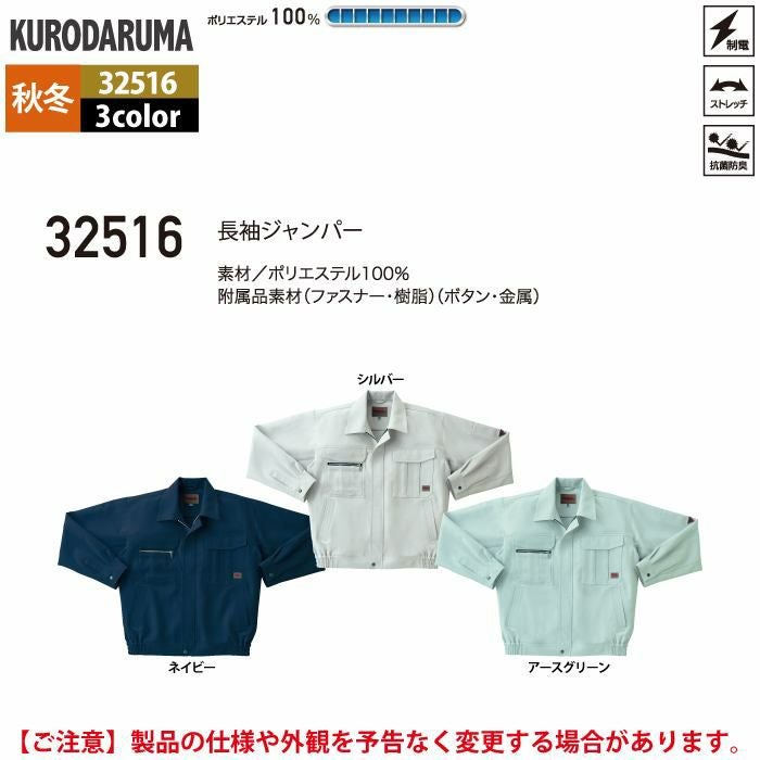 作業服 作業着 クロダルマ 作業服 秋冬用 32516 長袖ジャンパー 3L-5L