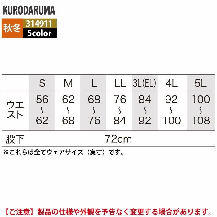作業服 作業着 クロダルマ 作業服 秋冬用 314911 レディーススラックス(ツータック) 3L-5L