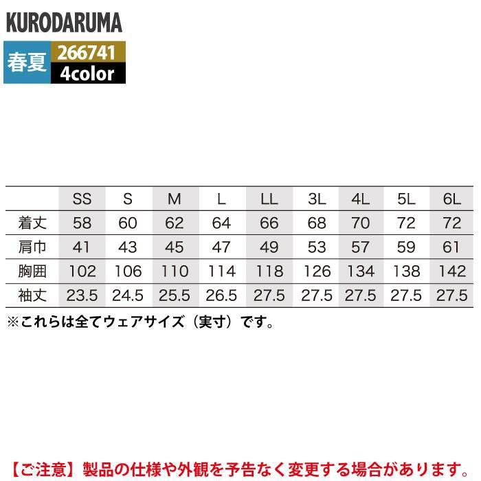 作業服 作業着 クロダルマ 作業服 春夏用 266741 半袖ジャンパー 6L