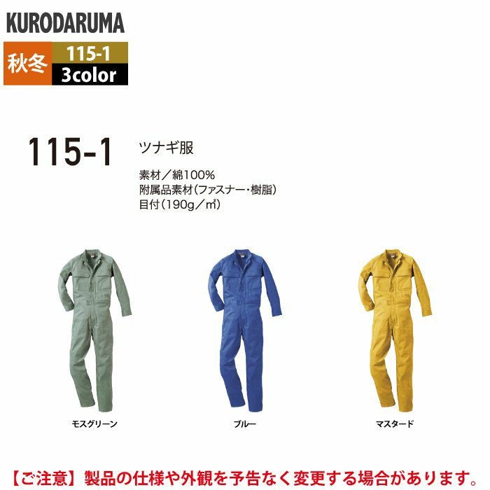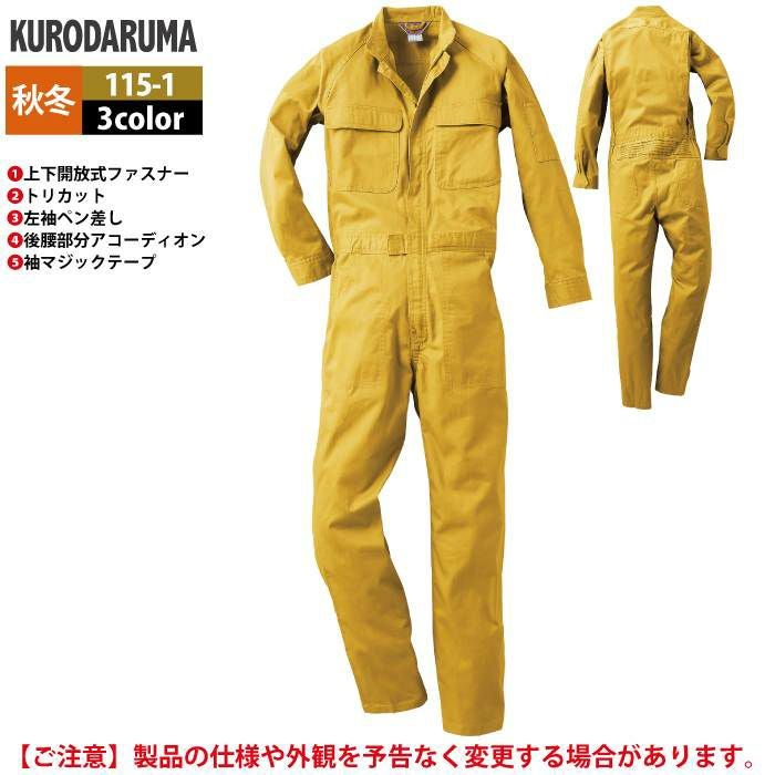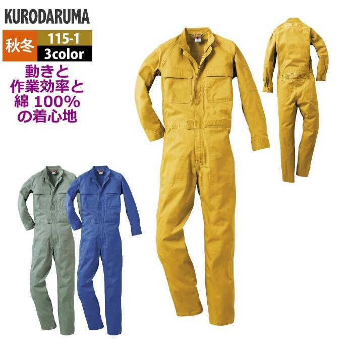 作業服 作業着 クロダルマ 作業服 秋冬用 115-1 ツナギ服 S-LL